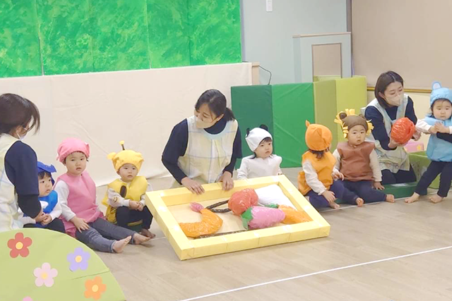 3~5歳児、全員での劇は5歳児リーダーが頼もしい